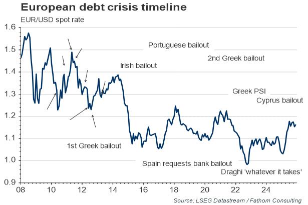 The European Debt Crisis illustrated in EUR/USD spot rate from 2008-2012