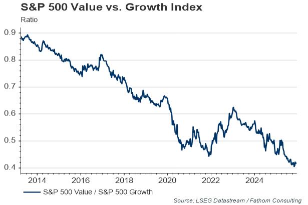 At the same time, US equity investors have been betting on prospects for future growth throughout the latter part of this year, as our chart below illustrates. As such, we have arguably reached a point where any postponement to the taper beyond the early part of 2014 will more likely than not be perceived in negative terms by the market. In a sense, it is almost as if investors are actively refraining from scaring the Fed away – in contrast to what happened during the summer.
