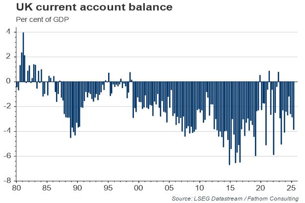 However, looking further ahead, sterling looks vulnerable to us. If we are right about inflation, markets will expect a response from the MPC, and in all likelihood the MPC will be slow to deliver. The current account deficit is currently as large as it was on the eve of the UK’s ERM exit. With this in mind, it leaves the pound looking vulnerable to a substantial fall further ahead. Indeed, many of the necessary ingredients for a good old-fashioned sterling crisis appear to be in place.