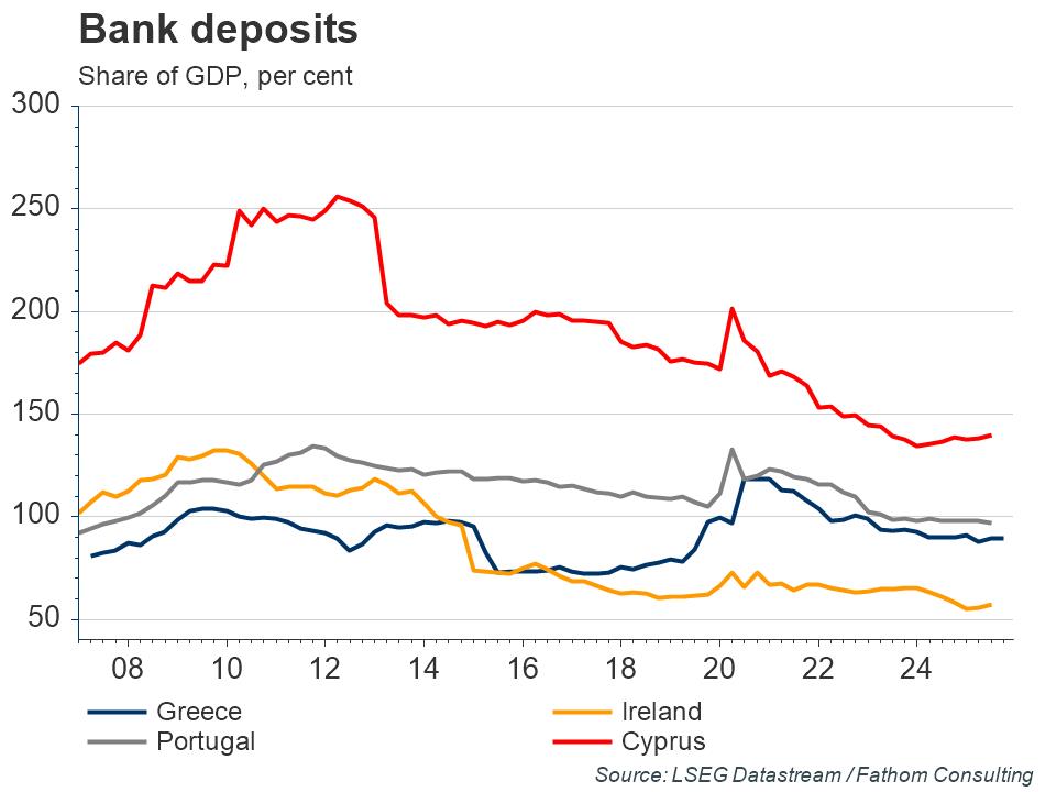 Currently, Greece benefits from Target2 which seamlessly recycles deposit flows from around the euro area; shielding Greece from some of the problems associated with capital flight. In the event of Grexit, however, Greece would no longer be a beneficiary and domestic capital controls would be necessary.