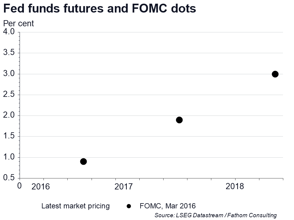 Rising inflation, combined with a reduction in financial market stress if China does double-down in the way we set out, would give the Fed more confidence to raise interest rates in line with the ‘dots’ curve through 2017. Next year, risks to the market curve for the federal funds rate lie firmly to the upside.