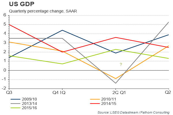 However, weak growth through the winter months of the year has been something of a feature of this US recovery. Since the end of 2010, average growth during the fourth and first quarters has been almost a percentage point below average growth during the second and third quarters. This can be seen in our next chart.