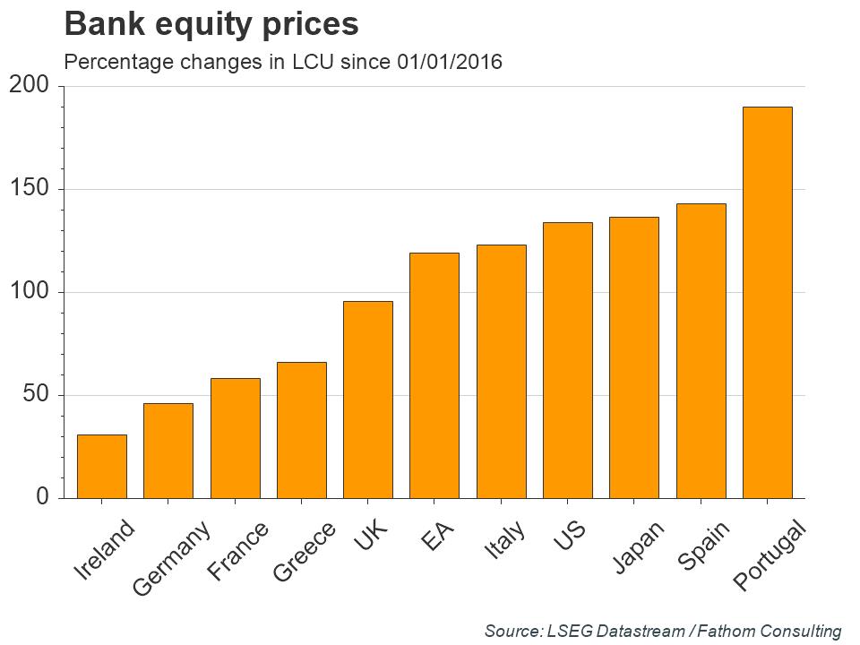 Structural flaws in the EA. We have been long-term bears in relation to euro area banks. Some equities are cheap for a reason, and EA bank equities are among those. We reiterated that call just before the Brexit referendum, arguing that weak EA banks will be some of the first casualities of the uncertainty about the future of the European project engendered by Brexit – and specifically about the future of the ‘ECB put’ option implicitly enjoyed by holders of peripheral sovereign debt in the euro area. Since then, a sequence of events have contributed further to that uncertainty: the Brexit vote, Trump’s election victory, the ‘no’ vote in Italy’s referendum. And there could be more to come during 2017.