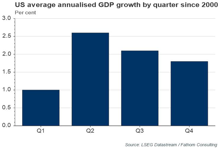 Accordingly, official economic data still exhibit seasonal bias: since the turn of the century, GDP has grown at an average annualised pace of 1.0% in Q1, compared to average annualised growth of around 2.0% in other quarters.