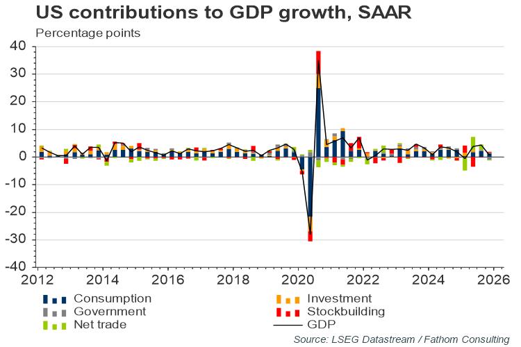 Today’s advance estimate of US GDP shows annualised growth of 0.7% in Q1, above our forecast of 0.2%, but below the consensus estimate. By contrast, business and consumer confidence are at record highs and our US economic sentiment indicator (USESI) points to robust economic activity. The current divergence between hard and soft economic data is unprecedented and is partially explained by transitory factors including seasonal adjustment quirks. But businesses and consumers, while optimistic, want more clarity on the administration’s fiscal and trade policies before loosening the purse strings.