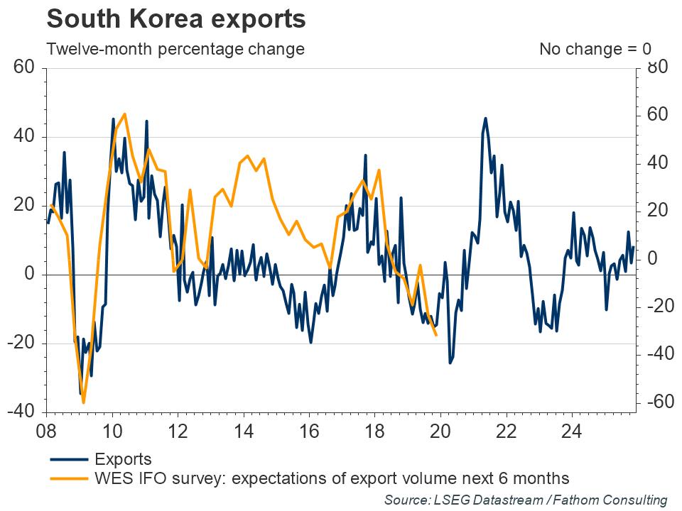 The short-term outlook for the South Korean economy will no doubt be highly affected by political developments and international relations, not only with its neighbour to the North, but with the major global powers, too. However, focusing solely on the domestic economy, there are reasons for optimism. President Moon’s actions to date suggest he is willing to support the economy through fiscal expansion. Since government debt is just 40% of GDP, 60 percentage points below the OECD average, he has the fiscal space to ramp up government expenditure without offsetting this by tax increases. Meanwhile, annual export growth of around 20% achieved so far this year looks set to continue for now. The average survey respondents’ assessment of ‘foreign trade volumes over the next six months’, according to the IMF World Economic Survey, reached a three-year high in Q3 this year, with an average answer of 32.6.