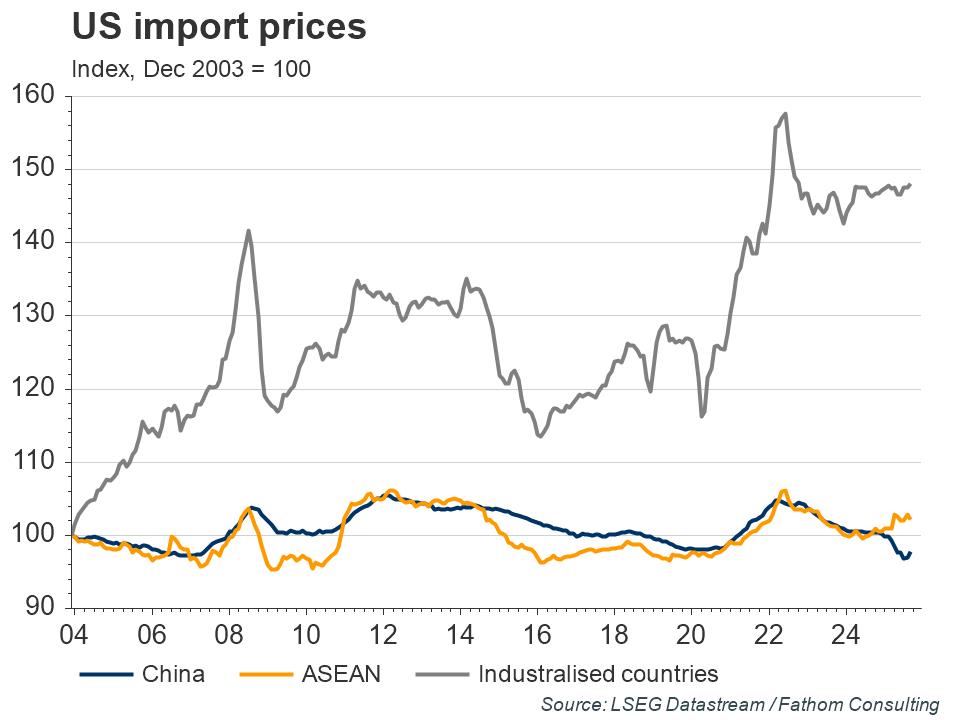 Owing to China’s vast amounts of excess productive capacity, government subsidies to predominately state-owned export firms and relatively low labour costs, China has provided cheap goods to the rest of the world. The price of US imports from China is the same today as it was fourteen years ago. During the same timeframe, the price of imports from advanced countries has increased by around 20%.
