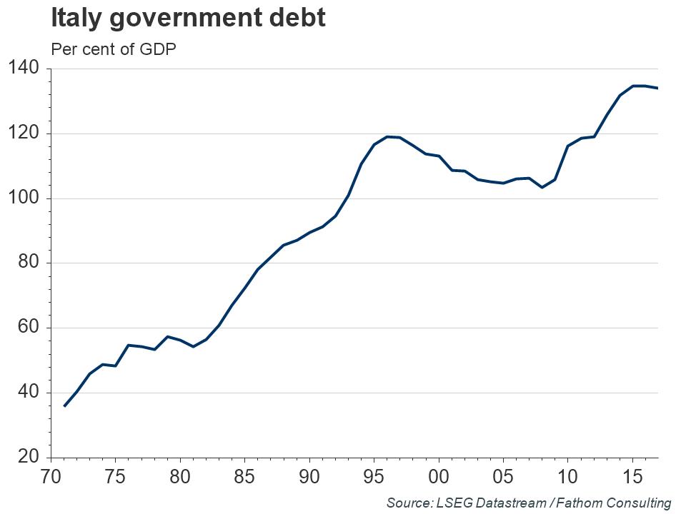 Regardless, of the electoral outcome, the outlook for Italian public finances remains grim. Years of structural reforms and anaemic economic growth have led to little appetite for further austerity. Indeed, with all major political parties currently proposing some form of fiscal expansion, Italian sovereign debt is unlikely to decline significantly from its current level.