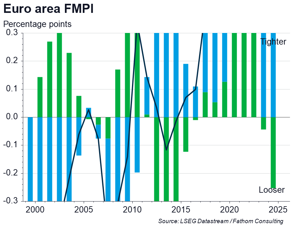 Across the euro area economies the degree of policy looseness is the greatest it has been since our series began in 1999, potentially explaining why the common currency area has been enjoying such a strong cyclical upturn recently. However, the ECB has announced that, from September of this year, monthly asset purchases will be halved to €15bn a month and phased out altogether by the end of 2018. We also expect that the composition of the ECB’s Governing Council will become more hawkish over the coming year. We believe that GDP growth across the currency bloc peaked in 2017, with a slew of weaker-than-expected survey and other soft data released in the first half of this year suggesting a slowdown in 2018.