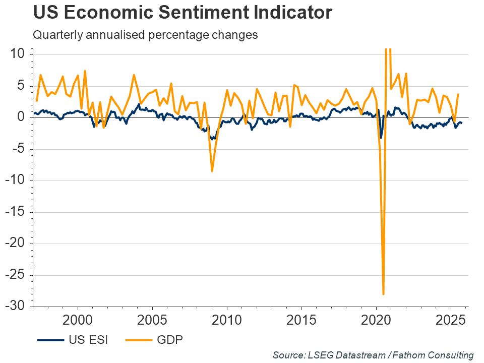 Trade tensions aside, the decline in our ESI is not surprising, as businesses feel the effects of rising input costs, including higher oil prices, and a tightening labor market. The bigger picture though, is that at current levels our ESI suggests that the US economy continues to expand at a healthy clip. Recent hard data suggest that GDP growth firmed in Q2, and we still expect GDP growth to exceed 3% this year.