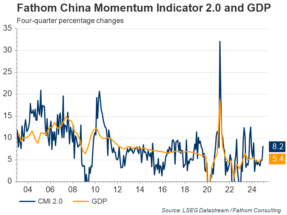 Currency depreciation was also used to cushion the downturn, a tool that may have been used again in recent weeks — in line with Fathom’s prediction as shown in the final chart below.