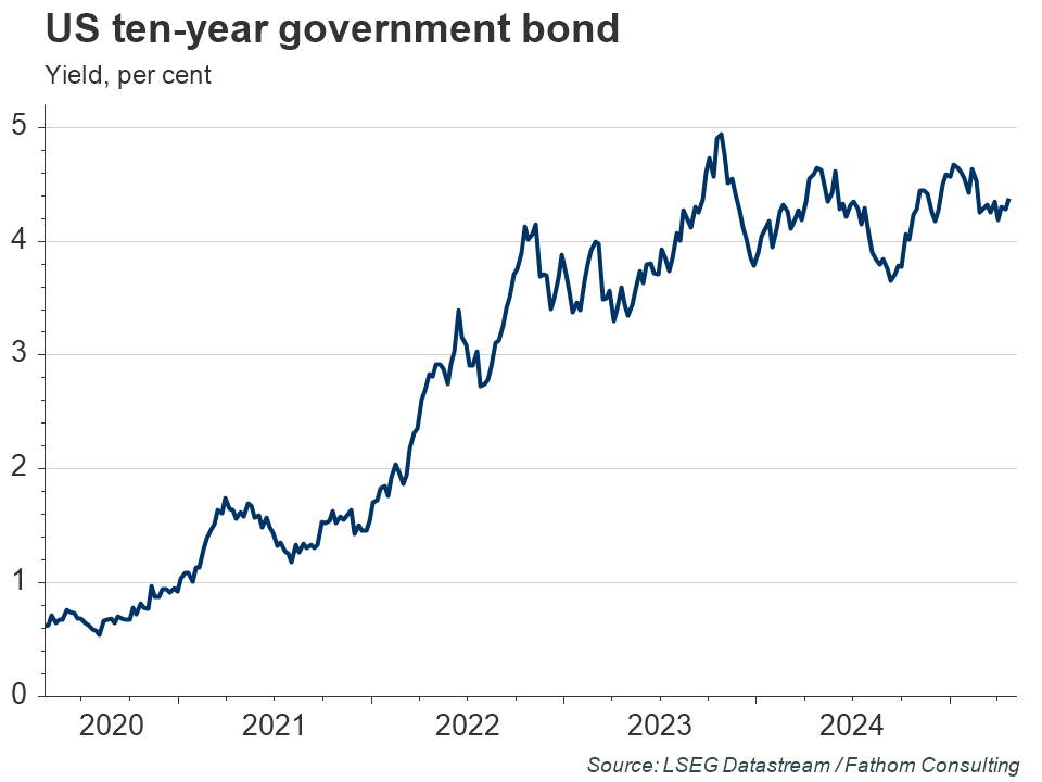 After peaking last summer, the FLIQ declined to a little below its historic average, as it became clear that the Fed would continue with its rate hiking cycle, and as concerns about the outlook for Chinese growth increased. Since then, the yield on a ten-year US government bond has increased by 60 basis points, while financial markets have been associated with bouts of heightened volatility.