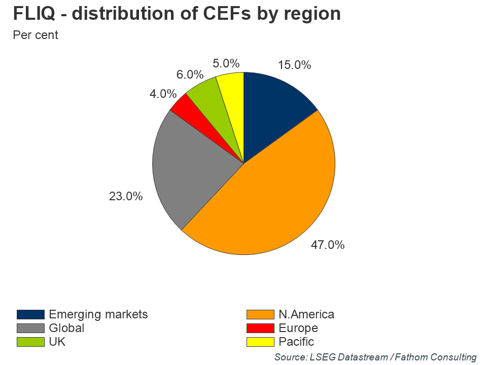 At the end of June 2018, the bulk of the assets held in CEFs were concentrated in either equity or fixed income. Meanwhile, North American and globally diversified funds dominated the geographical focus, though emerging market (EM) assets were also an important share of the total. The breakdown by asset class is not uniform across regions. For example, US assets held by CEFs are skewed towards fixed income, while EM assets held by CEFs are skewed towards real estate.
