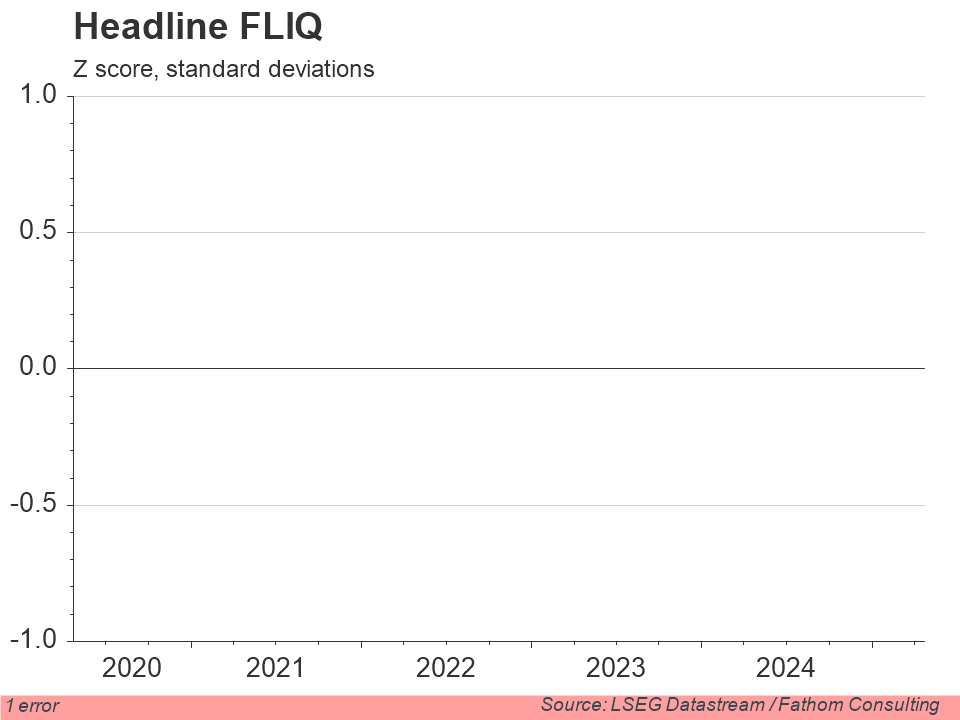 Fathom Consulting’s proprietary liquidity indicator, the FLIQ, points to a drop in market liquidity amid Federal Reserve rate hikes and quantitative tightening. The FLIQ is calculated by looking at the price of closed-end funds (CEFs). It is designed to provide a timely and intuitive assessment of aggregate financial market liquidity risk. By their nature, CEFs will tend to trade at a discount to the value of the underlying assets (their net asset value, or NAV). By measuring the size of this discount, relative to its historic average, we can obtain an estimate of the abundance, or the scarcity of market liquidity