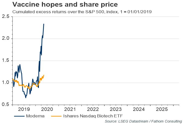 Beside the immediate impact on shares prices of biotech companies, the likelihood of a vaccine is of huge importance for the global economy, and for sustaining market valuations increasingly underpinned by hope as much as fundamentals.