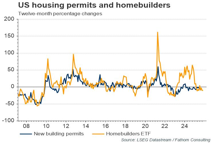 In markets, we have previously highlighted the polarisation between assets lagging due to their higher exposure to macro fundamentals and those that have rallied hard because of greater exposure to liquidity measures. This week weaker data on US home permits validated the macro side of this story, as homebuilders remain among the most macro-exposed equity sectors and have also significantly lagged the broader market
