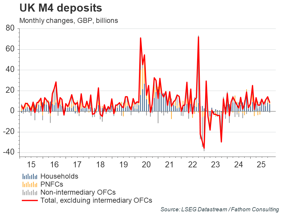 The UK money and credit data are both accurate and timely, and can sometimes offer useful insights into the behaviour of both firms and households. A surge in the deposits of both non-financial, and particularly financial corporates is likely to reflect strong demand for liquid assets in a time of substantial economic uncertainty. It is likely that the sharp pickup in household deposits reflected precautionary saving — it is notable, too, that households made the largest ever repayment of unsecured debt in March.
