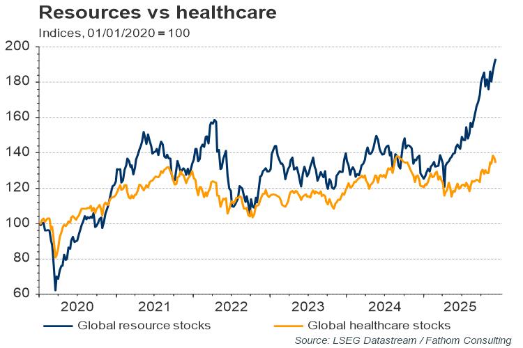 In the autumn we also advised clients to take a closer look at macro-sensitive assets, such as EMs and resource stocks, which tend to perform well as the macro economy recovers. This recommendation has outperformed less cyclical and more fashionable assets (e.g., pharma) thanks to an acceleration in the macro FMP.