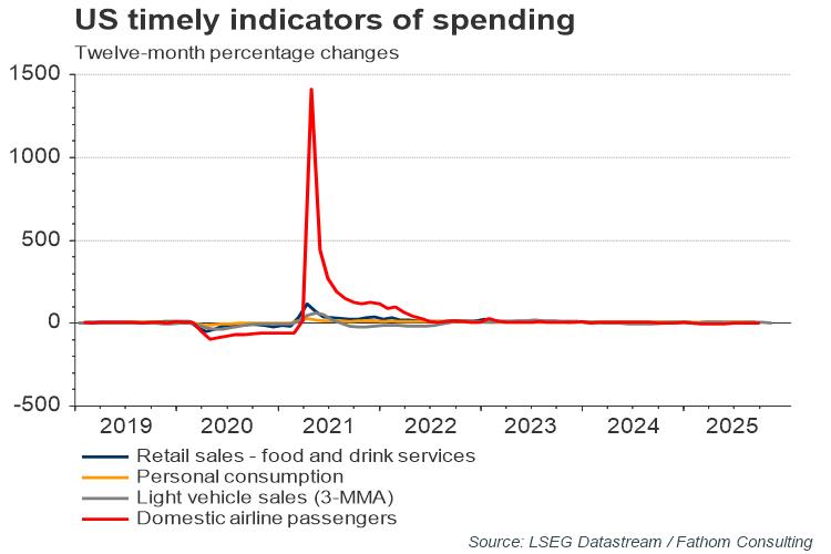 In Fathom’s view, a large proportion of those savings is likely to be spent as restrictions ease. Survey evidence from the Bank of England and New York Fed supports this view, suggesting that around a quarter of savings in the UK and US may be spent. Timely monthly indicators, such as retail sales related to activities restricted during lockdown, vehicle sales and the number of domestic airline passengers, have already risen sharply as confidence has returned to normal levels. However, other sectors are yet to show signs of recovery. International travel restrictions remain in place, impacting the level of bookings for tourism destinations. As the vaccine rollout continues and countries establish cross-border travel agreements, Fathom expects a further boost in economic confidence and global output.
