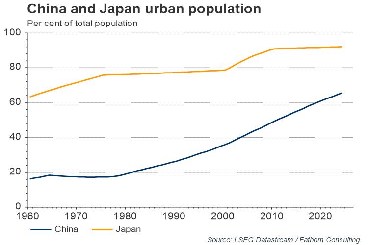 China has been a source of disinflationary pressure across the world since its accession to the WTO. Whether this will continue hinges on whether it has passed the Lewis turning point (LTP) — the point where industrialising countries exhaust their pool of cheap rural labour and wage pressures start to rise. If China passes the LTP, simulations from Fathom’s Global Economic and Strategic Allocation Model, conducted as part of a previous consultancy project, suggest that global inflation could rise by 0.6 percentage points on a sustained basis.