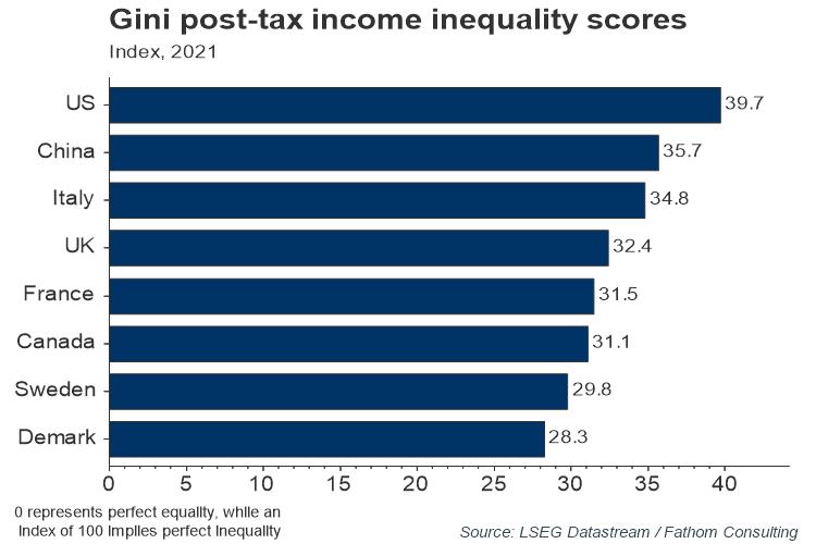 Since President Biden’s inauguration in January 2021, there has been a shift in the aims and objectives of US fiscal policy. Inequality has increased over the last few decades, and income inequality is above advanced economy peers. The Biden administration’s aim is to reverse this trend by fundamentally reframing fiscal policy, seeing it as a positive rather than negative force in the economy. Secretary of the Treasury, Janet Yellen, has set out a government strategy that places greater weight on those further down the income ladder, encourages employment and modernises public infrastructure.