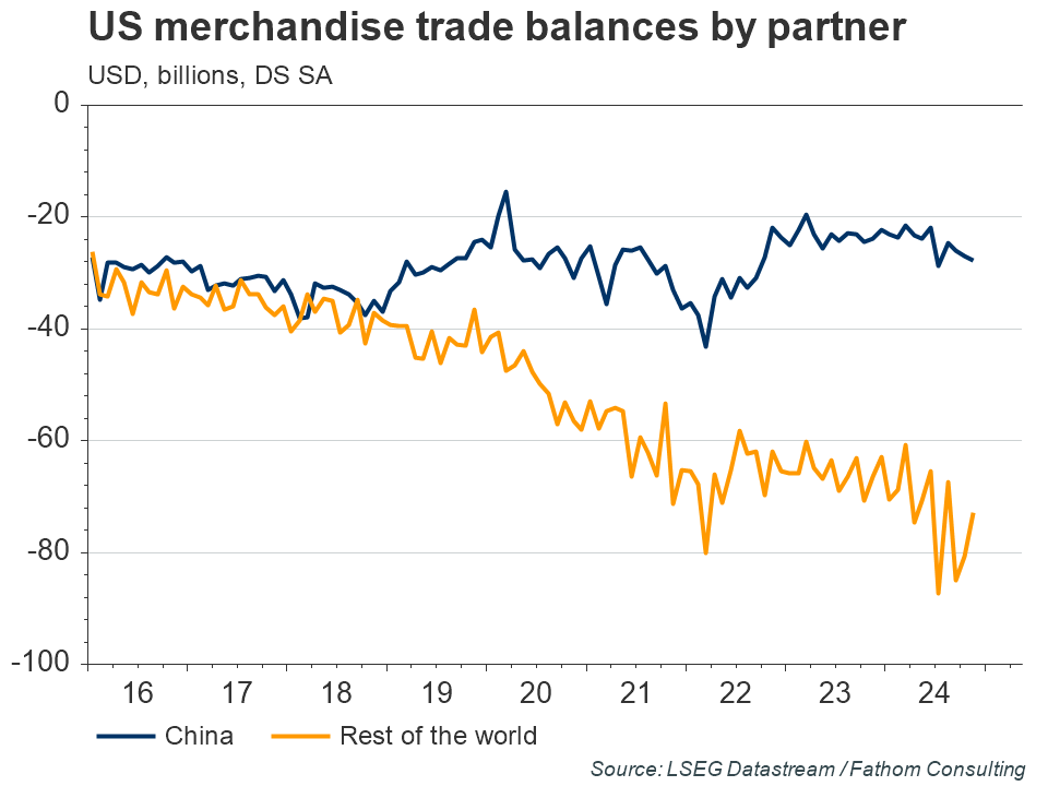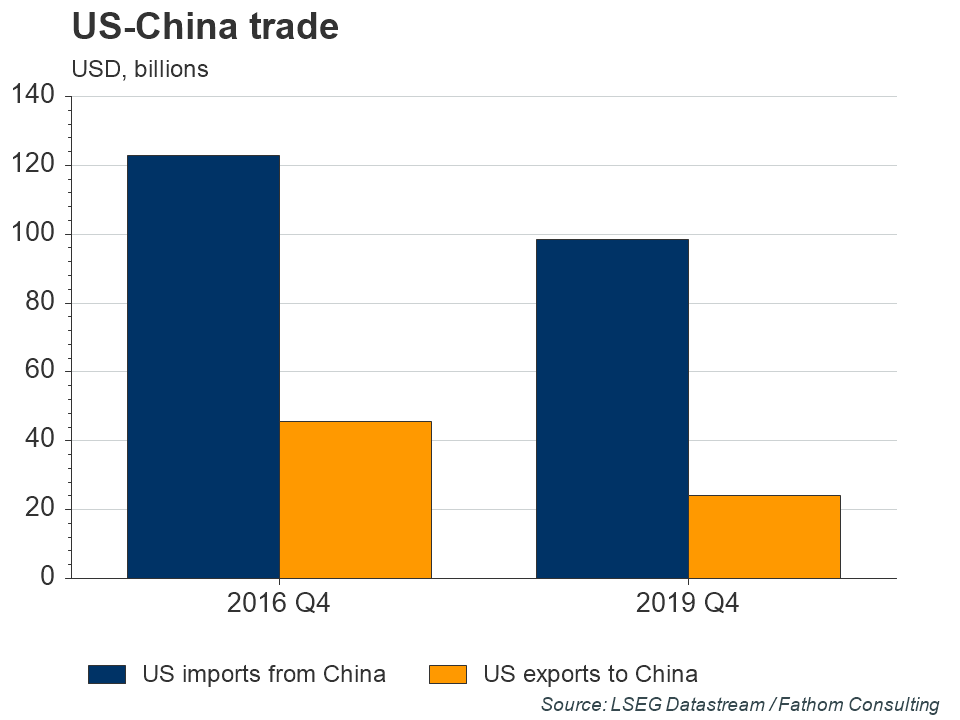 The real impact of the Trump administration’s tariff policy was to shift towards a regime of higher tariffs and lower bilateral trade than prevailed previously. In Fathom’s view, this is not a desirable outcome in and of itself. However, that does not necessarily make higher tariffs a bad idea. As previous Fathom research has shown, there may be gains for the US if the adoption of a ‘tit-for-tat’ strategy can be successfully used to influence Chinese economic policy. Given the world it finds itself in, this may be a policy that the Biden administration chooses to pursue.[1]