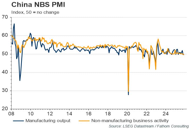 Data over the past several months have pointed to a clear slowing in Chinese economic momentum. Industrial production and retail sales grew at just 5.3% and 2.5% on a year-on-year basis in August and business confidence has also been in retreat (chart below). Small spikes in Covid-19 cases have contributed to the slowing in growth, as the authorities’ zero-tolerance approach results in strict containment measures. Indeed, the latter explain the outsized fall in sentiment in the non-manufacturing sector in August.