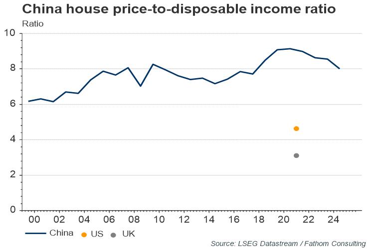 The seemingly greater tolerance for lower growth is influenced by several factors, including concern about the large negative side effects associated with China’s traditional growth model, attempts to reduce moral hazard in the financial system and President Xi’s focus on achieving ‘Common Prosperity’. Indeed, strong growth since the Great Financial Crisis came at the expense of soaring debt levels, with non-financial debt over 200% of GDP in Q1 2021 according to the Bank of International Settlements (BIS). Moreover, soaring house prices have greatly exacerbated inequality. Strikingly, China’s average house price-to-disposable income ratio was around 18 in 2020 — far higher than in the US and UK.