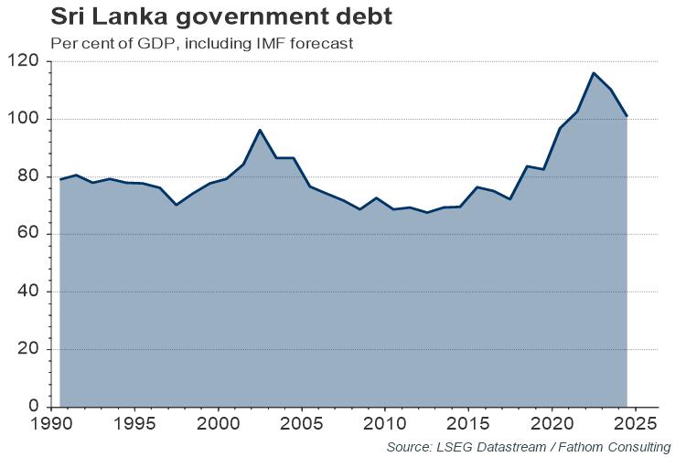 Sri Lanka’s public debt-to-GDP ratio rose by around 20 percentage points in response to the COVID-19 pandemic and now stands close to 110% of GDP. While this increase in debt is comparable to that in advanced economies, it is about double the increase in most other emerging economies. That said, Sri Lanka’s national debt was already elevated compared to its peers and the recent increase alone is probably not sufficient to be the sole driver of investor pessimism.