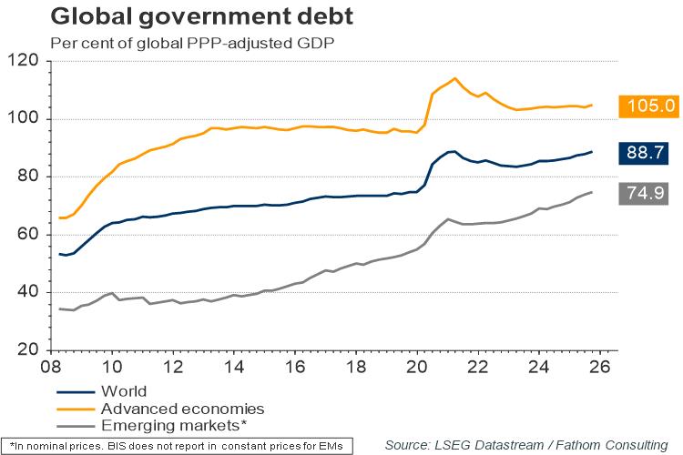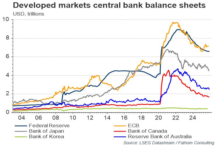 Fathom Consulting has created a large database of economic and financial market charts, which provide unique insight into the global economy, including comparisons between countries. These are available on Refinitiv’s Datastream Chartbook, under ‘03. Global data – 01. Macro and 02. Financial Markets’. A selection of these charts is shown below.