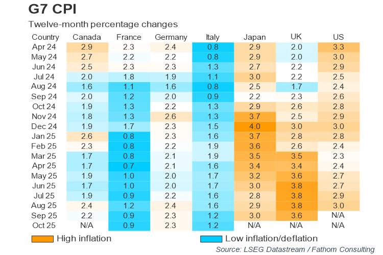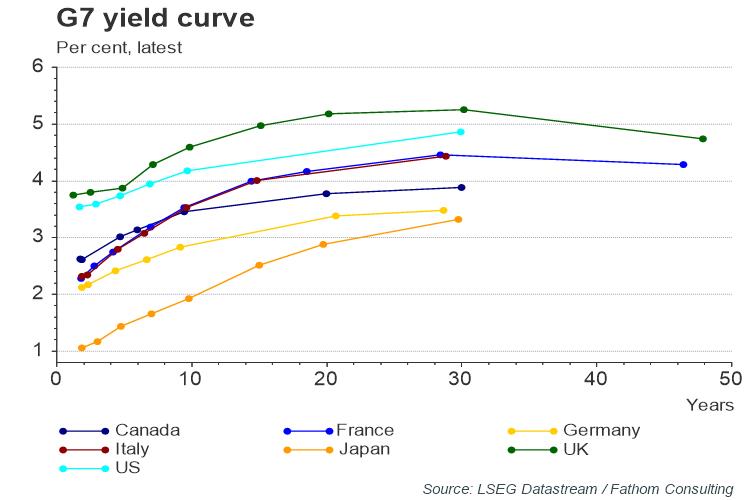 Fathom Consulting has created a large database of economic and financial market charts, which provide unique insight into the global economy, including comparisons between countries. A selection of these is shown in the charts below and available on Refinitiv’s Datastream Chartbook, under ‘04. International Comparisons – G7’