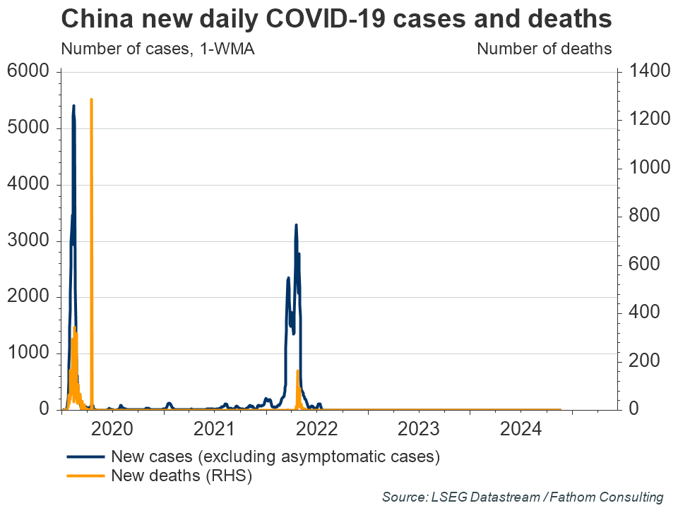 On a more positive note, new reported virus cases in China have plummeted. New daily cases in Shanghai have been below 1000 this week, down from a peak of over 27,000 in mid-April, and officials have suggested that they will continue to gradually loosen restrictions and open up the economy. This could be a slow process, however, as the authorities will not want to risk a resurgence in cases.