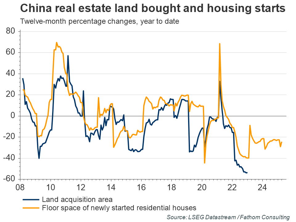 Perhaps unsurprisingly, housing activity remains firmly in the doldrums. In the first four months of the year, the areas of floor space started and sold were down 28% and 25% respectively compared with the same period in 2021, while the area of land purchased by real estate developers was almost 50% lower. This will add to pressures on local government finances, already hit by a weakening economy, and by the costs of stimulus measures and of administering the ‘zero-Covid’ policy. There was further housing-related policy easing. The central bank cut its 5-year Loan Prime Rate by 15bps and has allowed financial institutions to lower mortgage rates by an additional 20bps for first-time buyers. Policymakers are in a tricky position. Their policies have created a massive bubble in the housing market over the past decade, which appears to be bursting. It may be difficult to prevent this without an aggressive easing in policy that changes the narrative on the outlook for the sector, but also risks inflating the bubble more.