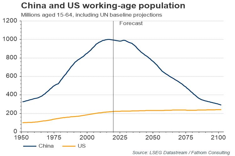 Long-run trends in economic growth depend on two factors: how rapidly a country’s workforce will grow and how productive that workforce is. The abundance of Chinese labour has been key to its emergence as a global manufacturing powerhouse. Its working-age population surged from around 350 million people in 1950 to more than one billion people now. In contrast, the US’s working-age population only increased by around 100 million over the same period.