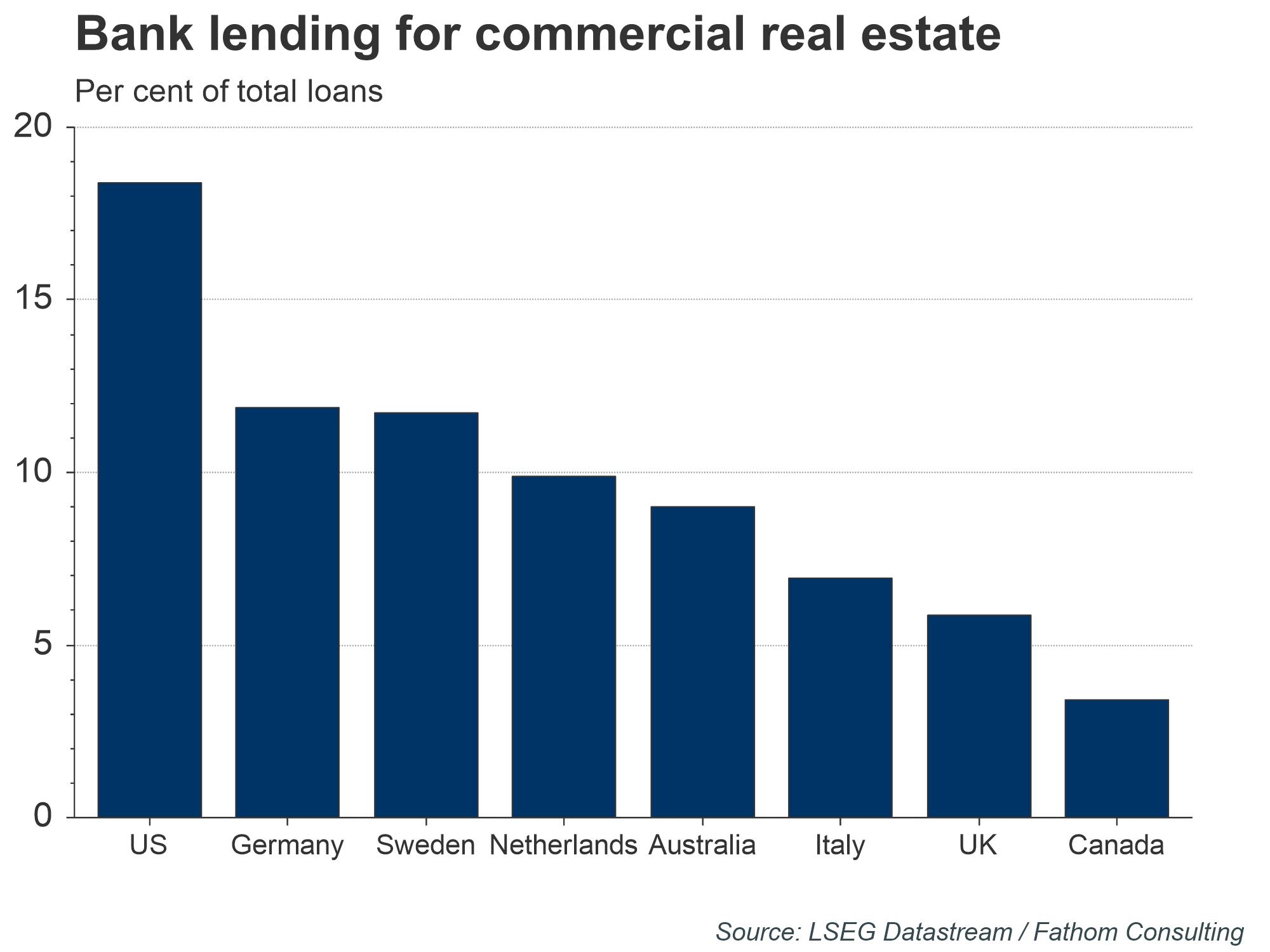 A sudden decline in house prices can trigger a banking crisis. Not only does it weigh heavily on economic growth and employment by reducing construction activity and consumption, but it also reduces the value of the collateral behind mortgages, leaving a hole in bank balance sheets if households default. Mortgages make up 45% of Swedish banks’ lending portfolios, while CRE is responsible for a further 19%, making the Swedish banking system particularly exposed.