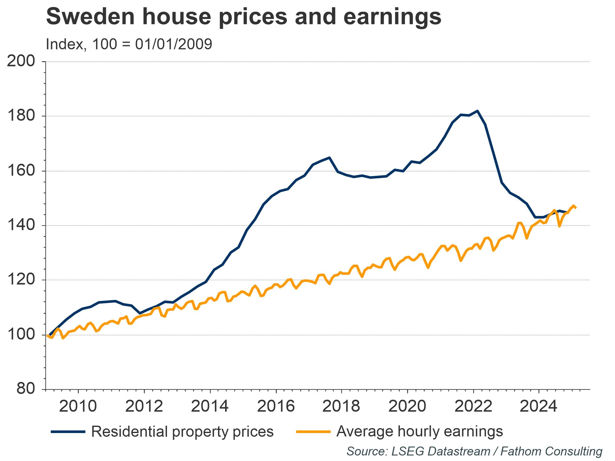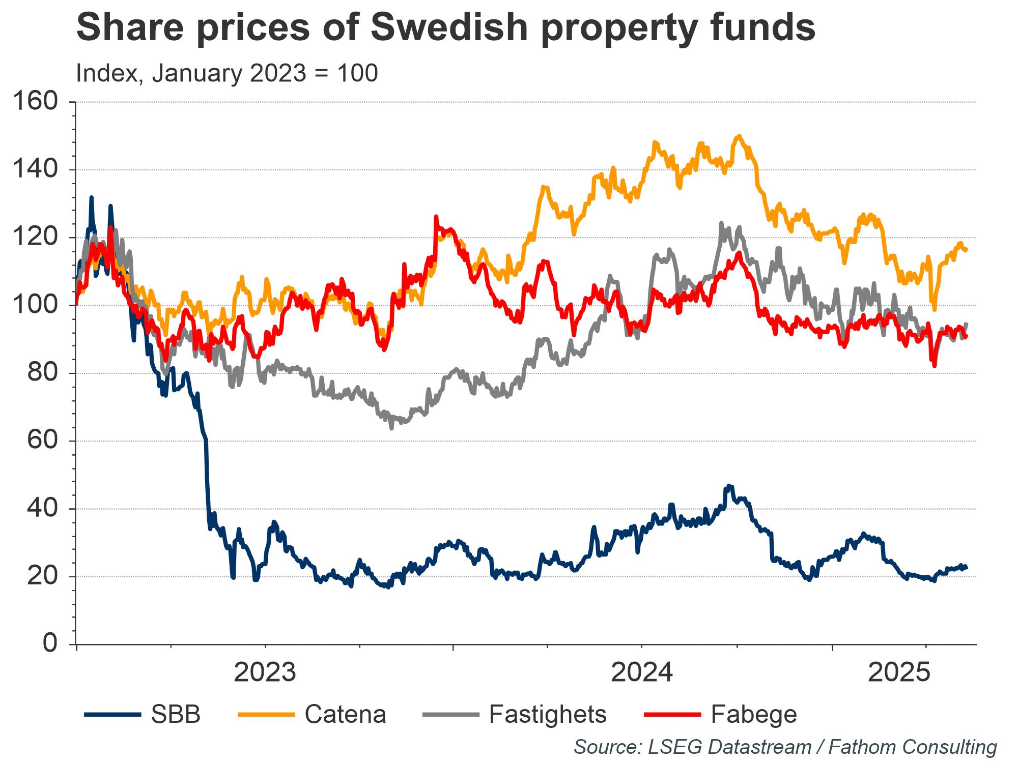 Now house prices are falling rapidly as affordability declines for both existing homeowners and new buyers. Swedish house prices have declined more rapidly than in any of the other G10 economies in the past year, with residential real estate falling by 15% since its peak in Q1 2022. There is trouble in Sweden’s commercial real estate (CRE) sector too, which is reporting office vacancy rates that are 5 percentage points higher than pre-pandemic levels. And when the property fund SBB announced plans to delay its dividend payment, investors took fright.