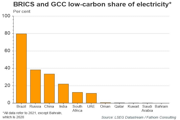 The UAE itself will also have some explaining to do: despite the recent increase, only 11% of its electricity comes from low-carbon sources. While this is a lot higher than the other five members of the Gulf Co-operation Council (GCC), it is much lower than all the G7 countries and most BRICS. What is more, annual CO2 emissions per capita are also much higher in the GCC than most other countries.