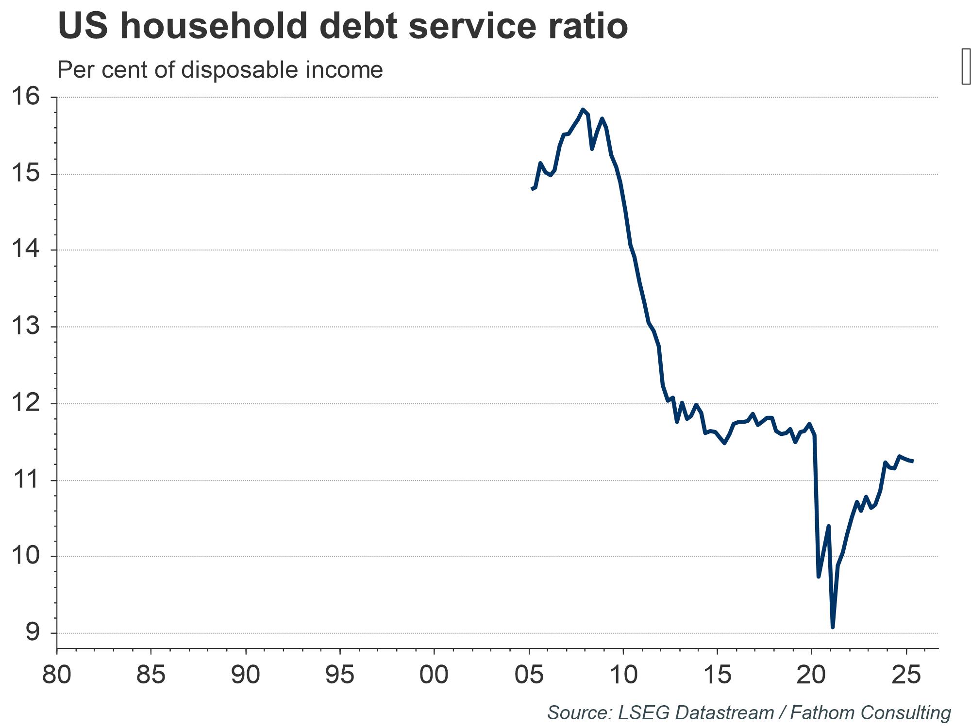Additionally, the rise in the burden of debt has not been as dramatic as one might have expected given the Fed’s aggressive hiking cycle, due to the large share of fixed-term mortgages in the US. As a majority of US homeowners have mortgages with 30-year fixed interest rates, higher interest rates are slower at feeding through and hitting households, making the tightening of monetary policy less effective in reducing economic activity than some had anticipated. This is less true in countries such as Finland and Ireland, where variable rate mortgages account for 96% and 42% of all mortgages respectively, making the transmission of tight monetary policy more effective. So although the debt service ratio is increasing in the US, debt costs do not weigh more heavily on households than they did pre-pandemic.