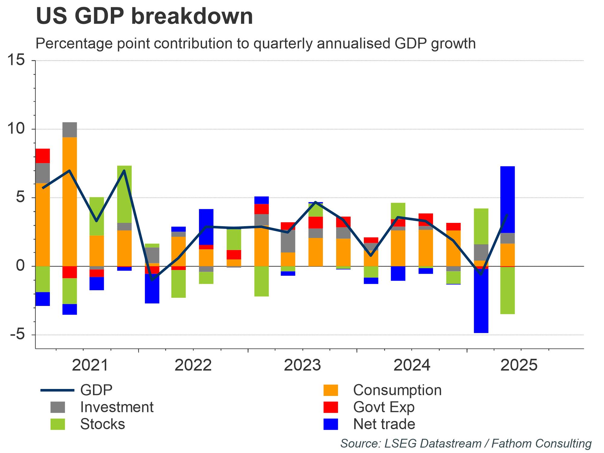 Last week saw the US Bureau of Statistics publish its preliminary estimate of GDP data for 2023 Q3, which shows that the economy grew at an annualised rate of 4.9%, its fastest pace since 2021, greatly surprising Reuters poll expectations of 4.3%. The main drivers were private consumption, greatly favoured by the lower inflation environment, and a significant build up of inventories. Government expenditure also contributed positively, mainly due to a higher defence spending. This stellar growth rate once again showcases the remarkable resilience of the US economy, particularly consumers, to a highly restrictive policy rate environment. However, while a strong economy is certainly good news it also puts the Fed in a difficult position, as it means that the return of inflation back to target may take longer than expected. In this environment, the Fed will likely need to leave policy rates higher for longer, which together with the lagged impact of monetary policy feeding through to the real economy, increases the likelihood of lower growth over the coming quarters. In our latest Global Outlook, Autumn 2023, we argued that the US is likely to avoid a recession, given the willingness of US households to smooth consumption as their pandemic savings deplete. However, we also flagged the risks of an increasingly vulnerable corporate sector, whose shocks could propagate to the household sector and cause trouble. Even so, the ongoing positive US data continues to stand out against the weakness of other geographical areas such as the Eurozone, indicating that Fathom’s forecast of ’diverge fortunes‘ is clearly materialising.