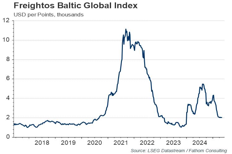 Attacks on commercial ships in the Rea Sea have forced vessels to take the longer and more expensive route around the Cape of Good Hope to get from the Indian Ocean to the Mediterranean. Coupled with a reduction in Panama Canal crossings due to lower-than-usual water levels, this has prompted a sharp rise in global shipping costs — drawing parallels with the supply shocks of 2021 and 2022, when inflation soared.