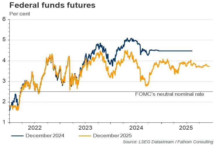 As the US economy continues to convalesce from the COVID and inflationary shocks, the path for interest rates remains uncertain. If current disinflationary trends persist, a pattern of easing may well be warranted. However, the latest data point to an acceleration in economic activity in recent months. Jobs growth seems to have picked up momentum, while there has been an uptick in survey measures of activity. Given that the economy appears to have been able to absorb the Fed’s hiking cycle better than many anticipated, that may encourage Fed policymakers to stay put and wait for clearer signs of disinflation or labour market weakness.