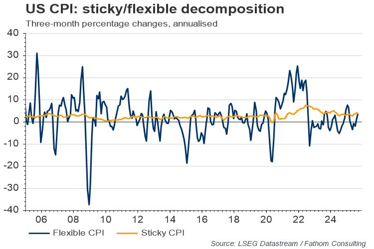 Following the large inflation shock in the immediate aftermath of COVID, a primary concern has been the extent to which inflationary dynamics persist. One method to assess this is to compare the inflationary dynamics of goods and services where prices have historically been relatively quick (flexible) or slow (sticky) to adjust. The Atlanta Fed’s flexible and sticky CPI indices do just that. These also show a slowing in near-term momentum for sticky CPI, with its three-month annualised rate easing to 4.5% from 5.2%, following a cyclical trough of 3.6% last July. A core measure of sticky prices that excludes housing costs shows a similar drop on a three-month annualised basis.