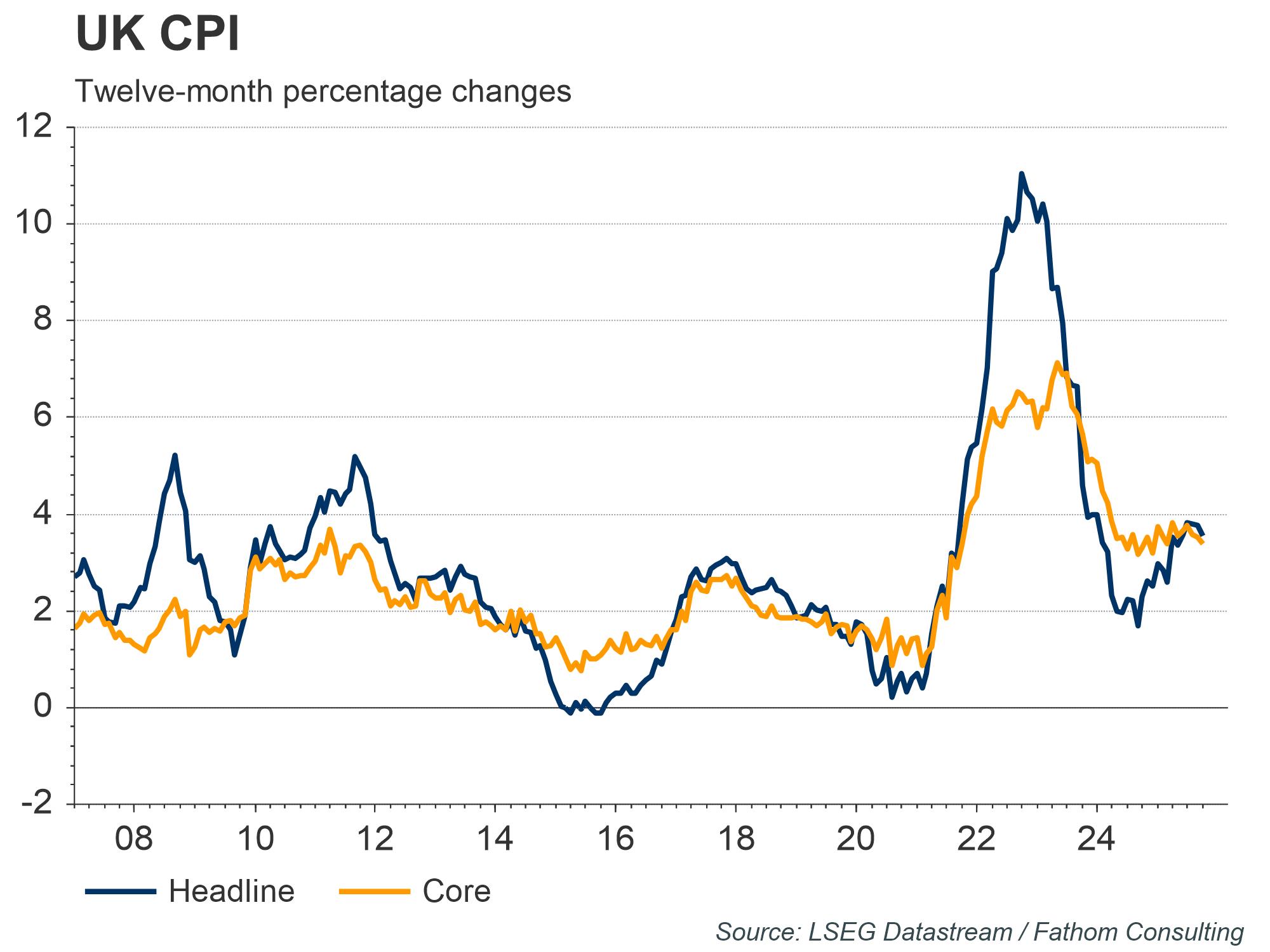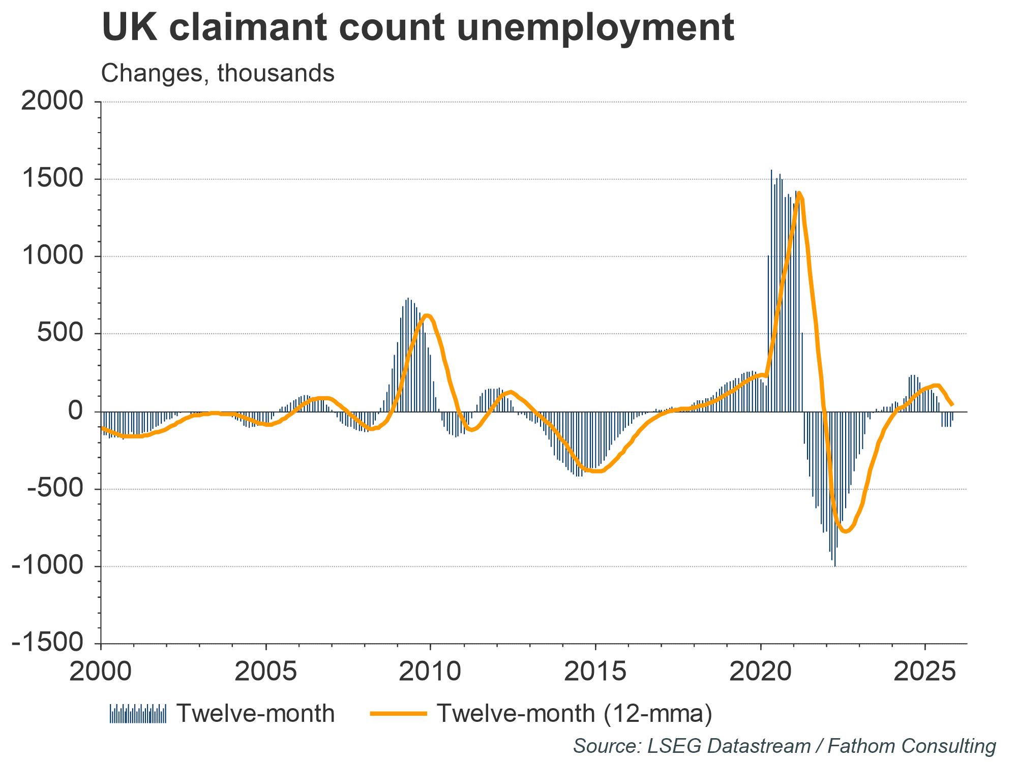 We do not currently have a firm grasp on UK labour market data due to issues with the ONS’s survey (the response rate to their Labour Force Survey has dropped significantly since the pandemic). However, to the extent that we can trust the data that are reported, they suggest that unemployment is beginning to trend up slightly, albeit at a very slow rate. An alternative measure, the claimant count, also supports this assertion.