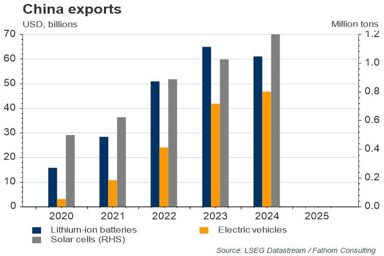 Overall, China’s strategy of focusing on high-tech exports will probably help to pick up some of the slack in its economy. However, structural headwinds and rising de-risking efforts by the West lead us to believe that China’s trend growth is still likely to head south in the coming years. Fathom will be presenting our latest outlook on China and the rest of the global economy in a series of client presentations over the coming weeks. LSEG clients will soon be able to access charts and analysis from Fathom’s Global Outlook, Summer 2024 in the Chartbook.