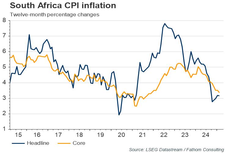 The stronger currency and decline in government borrowing costs will be welcome news for the new administration as it starts its agenda. The stronger currency is a sign of improved investor confidence and that, together with any pass-through to inflation, which remains within the South African Reserve Bank’s target range of 3-6%, could make it easier for the bank to cut its key policy rate, which currently sits at 8.25%.