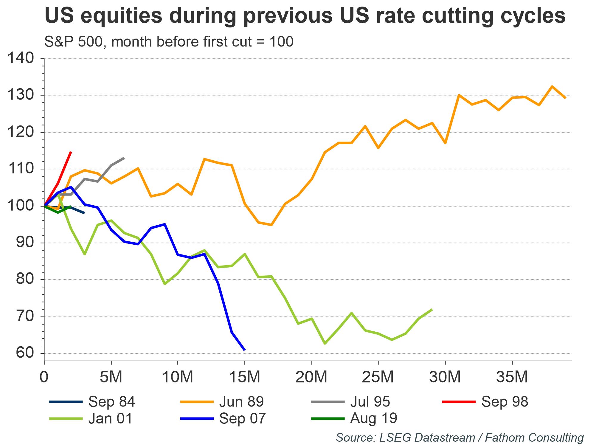 Previous Fed rate-cutting episodes may not offer that many clues. The length of rate-cutting cycles and the amount that rates are cut in those cycles has varied considerably over the past 40 years. In other words, easing cycles can be very different in nature. One common thread is that the Fed typically cuts rates ahead of, or during, recessions. But while we expect the US economy to slow in the coming quarters, we do not foresee an outright US recession on the cards anytime soon – meaning that there may be less impetus to cut in the current cycle relative to previous cutting cycles.