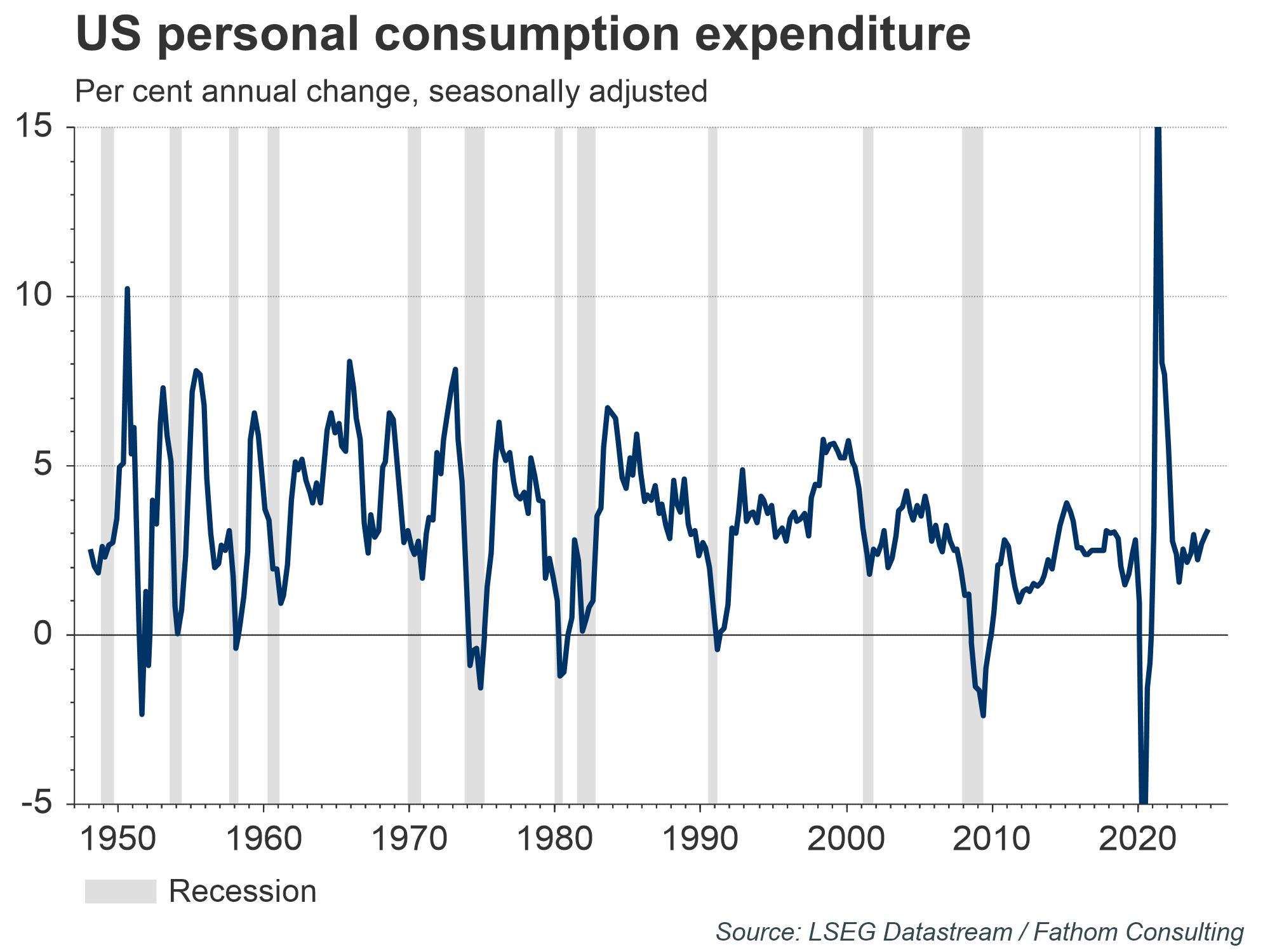 The lack of an obvious aggregate demand shock is a key reason that Fathom’s central case remains that the US economy will not experience a recession in this or the coming year. Consumer confidence has been stable and has not fallen as rapidly as has commonly been seen before the start of a recessionary period. Meanwhile, consumption is also relatively strong and has been growing faster than its pre-pandemic range. Ongoing positive real wage growth should continue to support demand. Meanwhile, the corporate sector, which is where we identified elevated recessionary risks, will benefit from anticipated rate cuts via lower borrowing costs. A recession certainly cannot be ruled out, but things may not be quite as bad as ardent followers of the yield curve or Sahm rule might suggest.