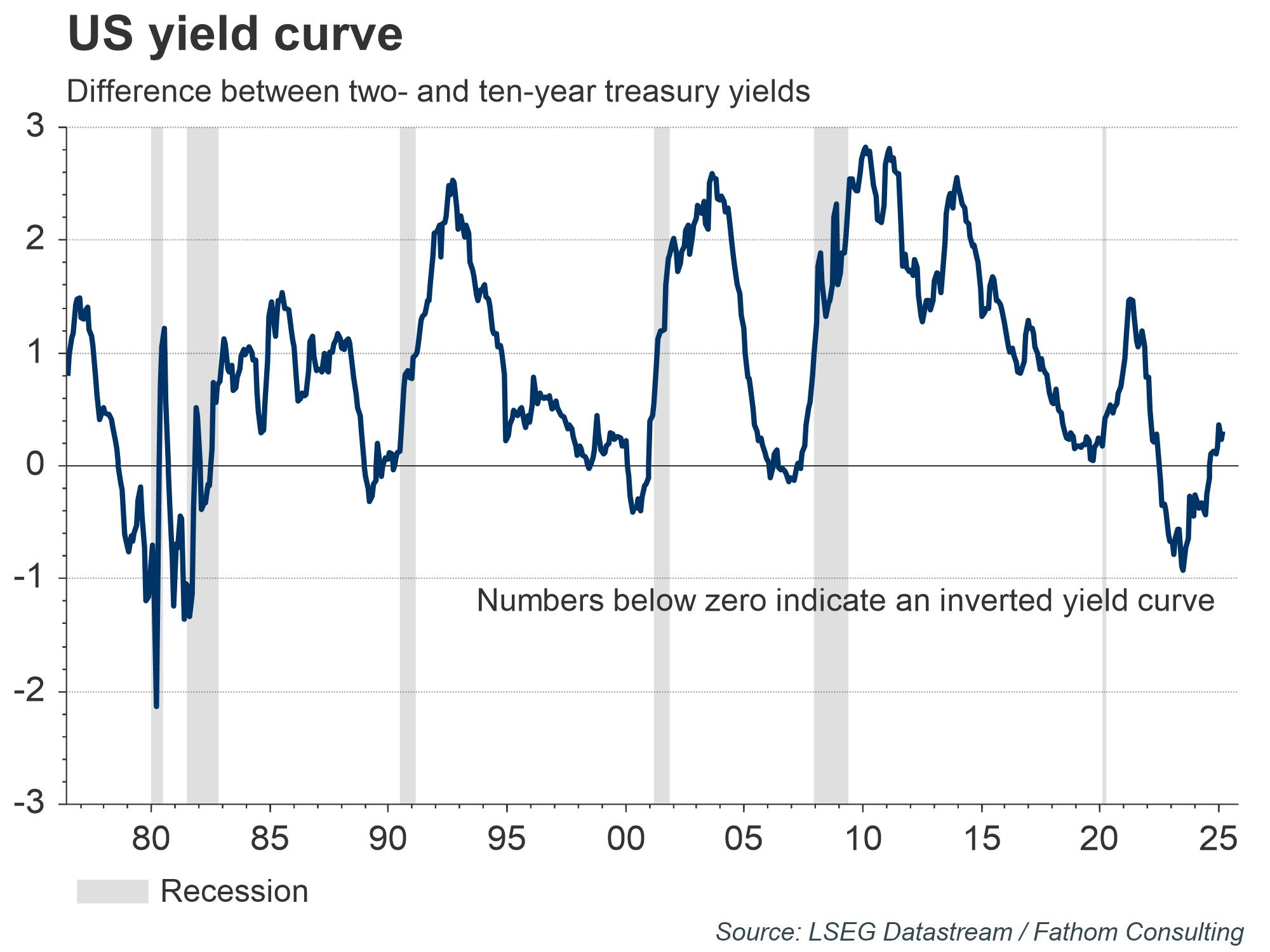 A yield curve inversion has often been touted as a sure-fire signal of a looming recession. Indeed, the yield on two-year treasuries exceeded the yield on ten-year treasuries ahead of five of the last six US recessions. However, yield curve inversions do not cause recessions. Instead, they reflect investors’ perception of monetary policy, which itself reflects the outlook for the economy. Many investors and commentators have been calling for a US recession for some time now, while the economy has continued to fare better-than-expected. As the chart below shows, the yield curve has been inverted since July 2022, with no recession forthcoming.