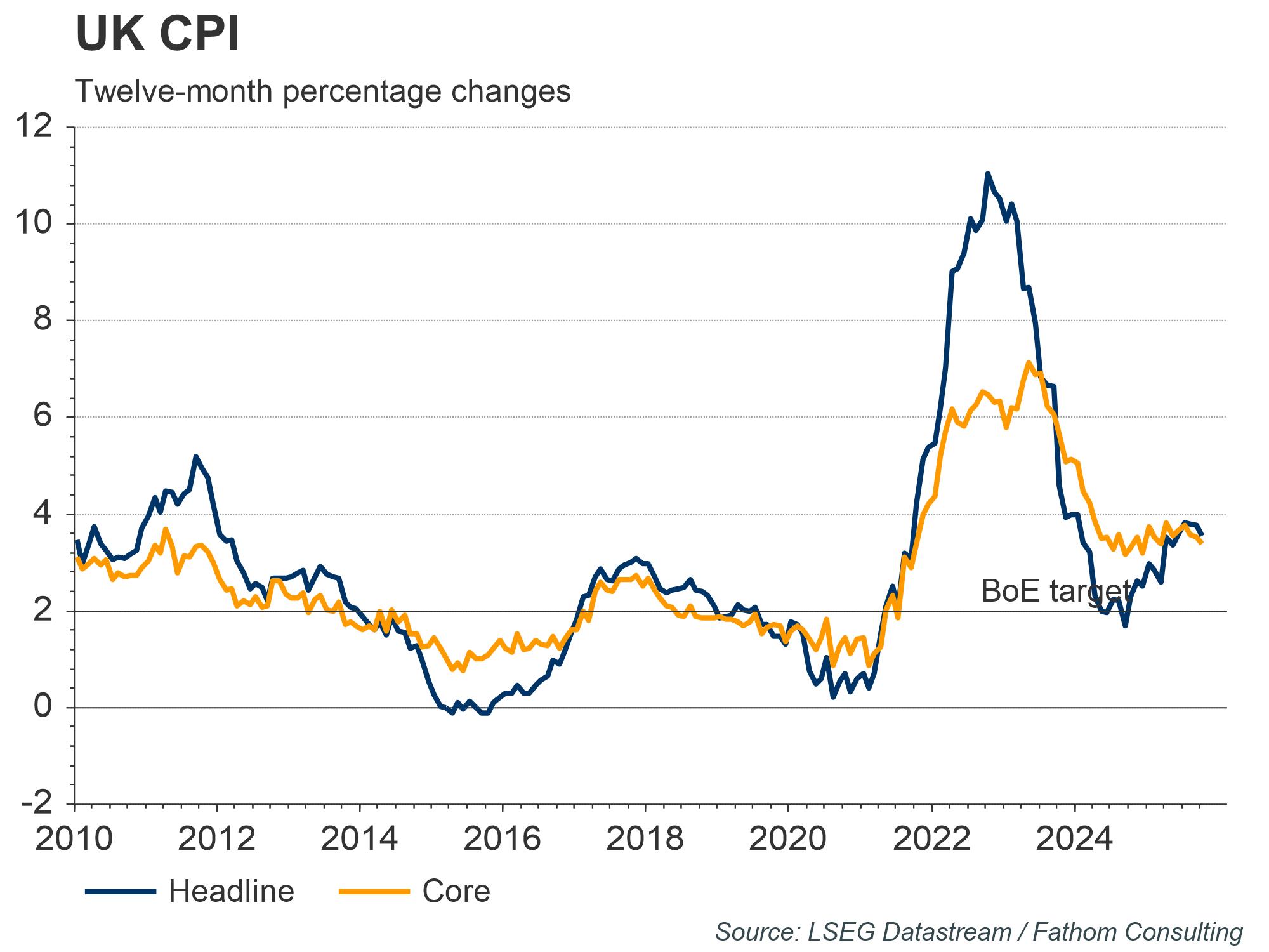 However, inflation trends could be working against the central bank’s ability to deliver on any significant cuts. Consumer Price Index (CPI) inflation has almost exclusively been higher than the Bank of England (BoE) target of 2% since 2021. Although headline CPI inflation briefly returned below target in September 2024, stubbornly high core-CPI inflation figures always casts some doubts on the sustainability of this trend.