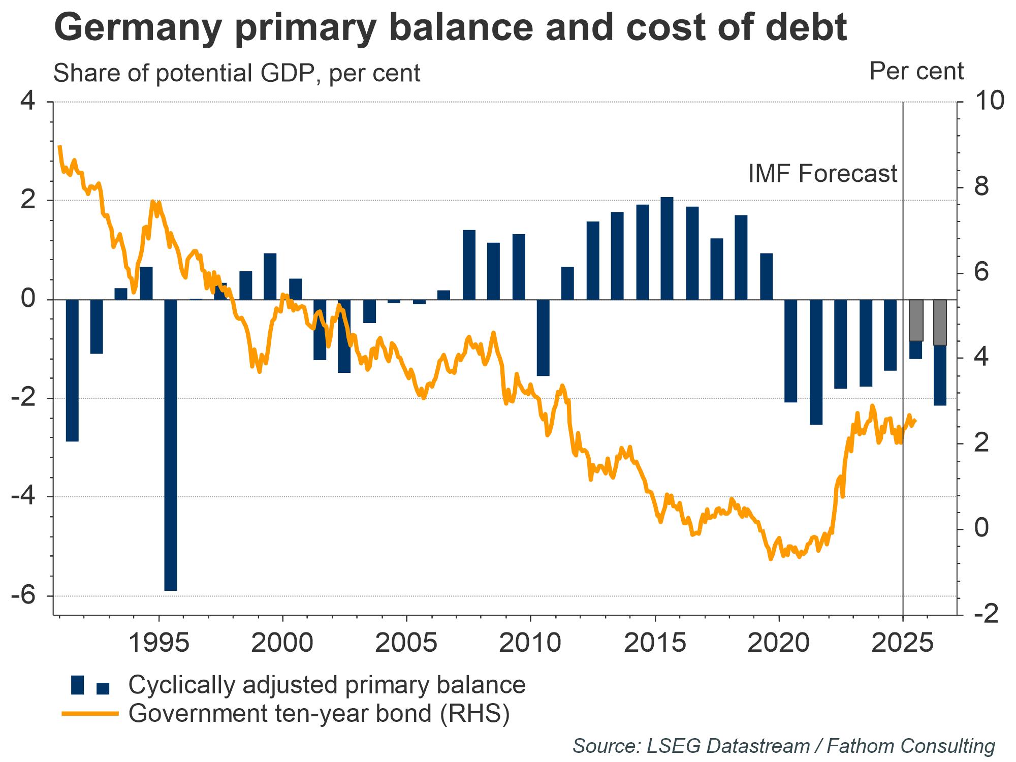 Europe, led by Germany, has finally begun to move in a trajectory that could potentially help the US close its external liability position. Berlin has suspended its constitutional debt brake, exempted defence spending of up to 1.5 % of GDP from EU fiscal limits and pledged €100 billion for infrastructure. With the lowest debt‑to‑GDP ratio in the G7 and, on average, a balanced budget since the turn of the century, Germany can afford to loosen up; Bund yields have barely budged.
